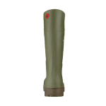 Su diseño combina funcionalidad y estética, con caña en color verde y suela marrón, ofreciendo una apariencia profesional.